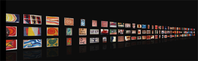 Die Praxis fordert viel Konzentration; immer wieder über dieselbe Linie zu fahren. Je öfter eine Farbe aufgetragen wird, desto kräftiger der Farbton. Der nur aus der Nähe wahrnehmbare Sprüheffekt verleiht Calegaris schlichten, manchmal fasst streng grafischen Kompositionen eine Weichheit, die entspannend wirkt, Lebensfreude und starke Emotionen vermittelt.